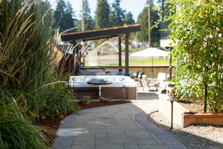 Climbing plants add natural texture to the vertical posts and framing. Consider native species that thrive in the Washington climate, reducing the need for constant care. Native vines also support local wildlife. Allowing these plants to grow up the 6×6 frame or along lattice panels is a great design move.